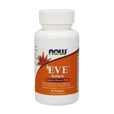 NOW Eve Multi Softgels - комплекс витаминов и минералов для женщин. Регулирует уровень женских гормонов, облегчает симптомы менопаузы. Оказывает дерматотропное действие, поддерживает здоровье кожи, волос и ногтей, удерживает кальций в организме