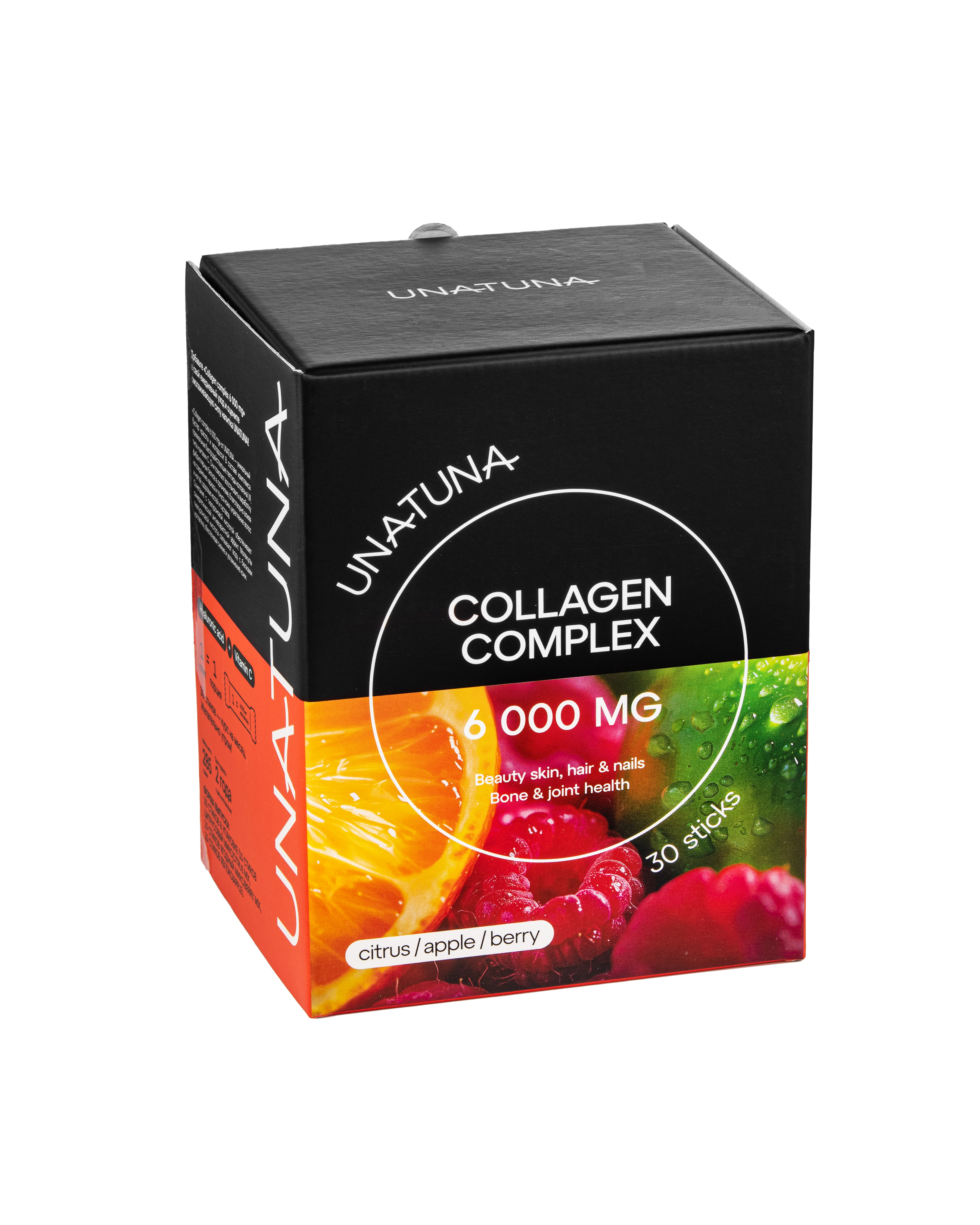 Коллаген от UnaTuna – это витаминный комплекс, содержащий пептиды коллагена, витамин С и гиалуроновую кислоту. Основная функция коллагена – поддержка соединительной ткани и борьба с возрастными изменениями. Именно поэтому так важно принимать коллаген для лица: он сокращает сухость и морщины, делая кожу упругой и эластичной. Не менее важен коллаген для волос: он ускоряет их рост, способствует укреплению и значительно сокращает выпадение. Многие также применяют коллаген говяжий для суставов: он устраняет боль и хруст, улучшая подвижность тела. Таким образом коллаген питьевой – это незаменимая добавка для здоровья кожи, волос, ногтей и опорно-двигательной системы. Лучше всего усваивается коллаген с витамином С и гиалуроновой кислотой. Именно поэтому состав коллагена от UnaTuna отличается максимальной биодоступностью и усвояемостью.